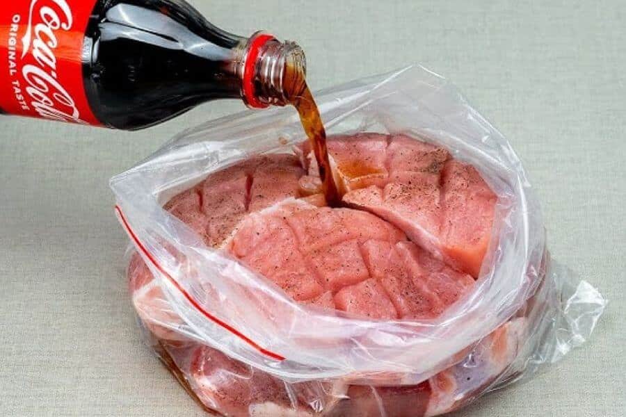 Want ultra-tender meat without expensive marinades? Soak tough cuts in cola for 10 minutes before cooking. The acidity breaks down fibers.